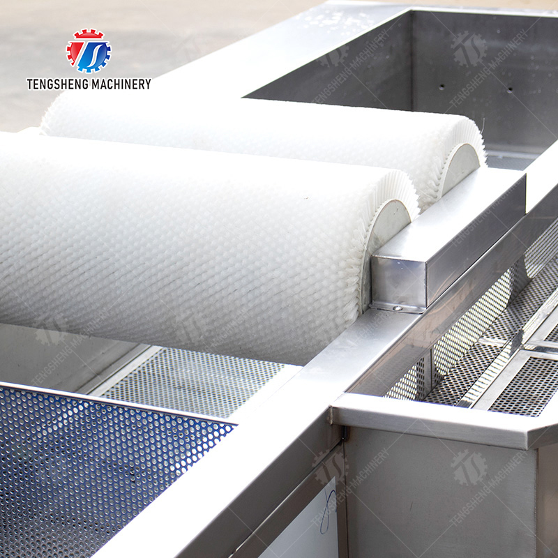 Dây chuyền sản xuất làm sạch và sấy khô bàn chải trái cây bao gồm máy rửa trái cây khử trùng bằng ozon bàn chải TS-X300M và máy sấy ly tâm TS-PX35. bằng máy làm khô không khí sau khi làm sạch.